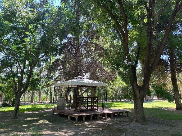 • Fire pit (fogón): situado en el parque, preparado para cocinar a la llama; equipado con alacenas, lavabo y vajilla propia.