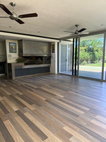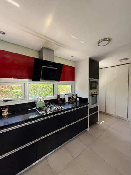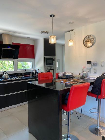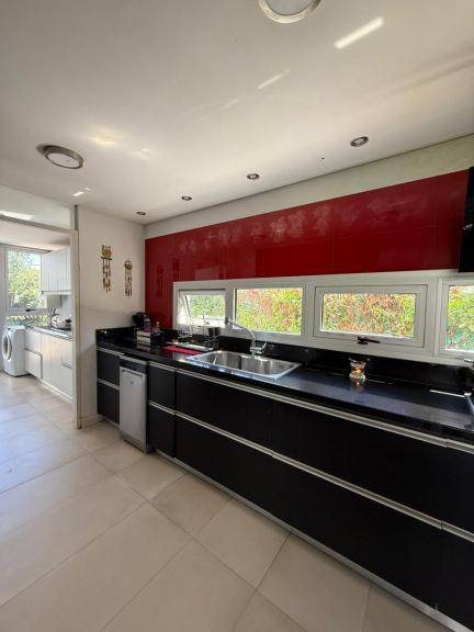 -Planta Baja: con recibidor, amplio estar comedor con ventanales hacia patio jardin, toilette de visitas, cocina muy bien equipada, moderna y funcional. Lavadero cubierto contiguo, parquizado, piscina, quincho totalmente equipado, con parrilla, cocina y baño. Cochera doble con porton de ingreso automatizado.