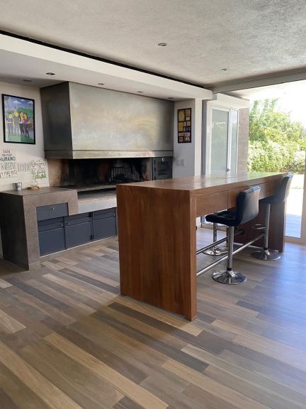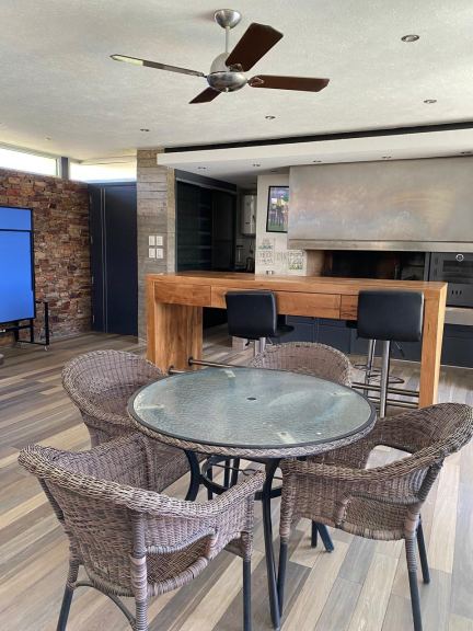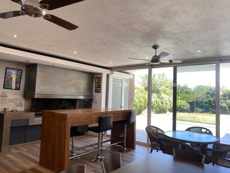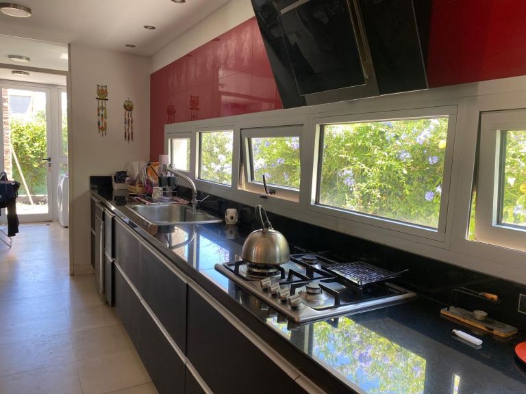 Planta Baja consta de recibidor, amplio estar comedor con ventanales hacia patio jardin, toilette de visitas, cocina muy bien equipada, moderna y funcional. Lavadero cubierto contiguo, parquizado, piscina, quincho totalmente equipado, con parrilla, cocina y baño. Cochera doble con porton de ingreso automatizado.