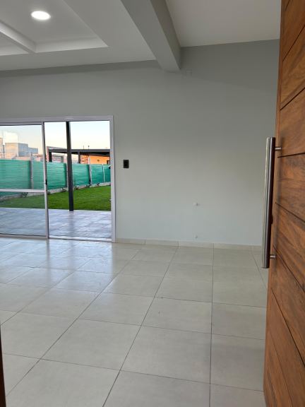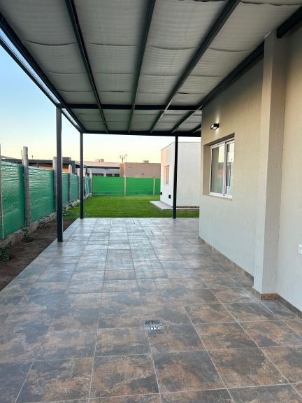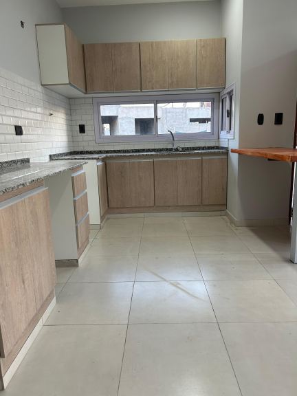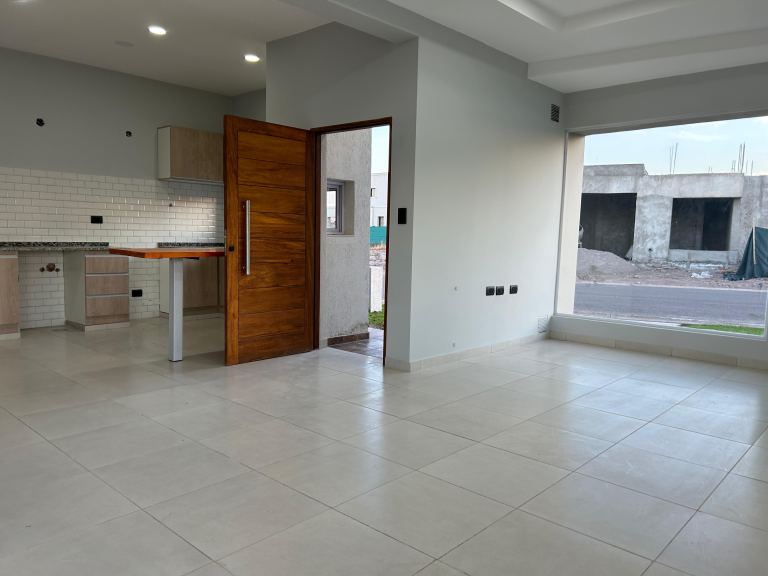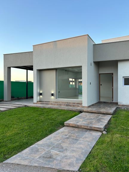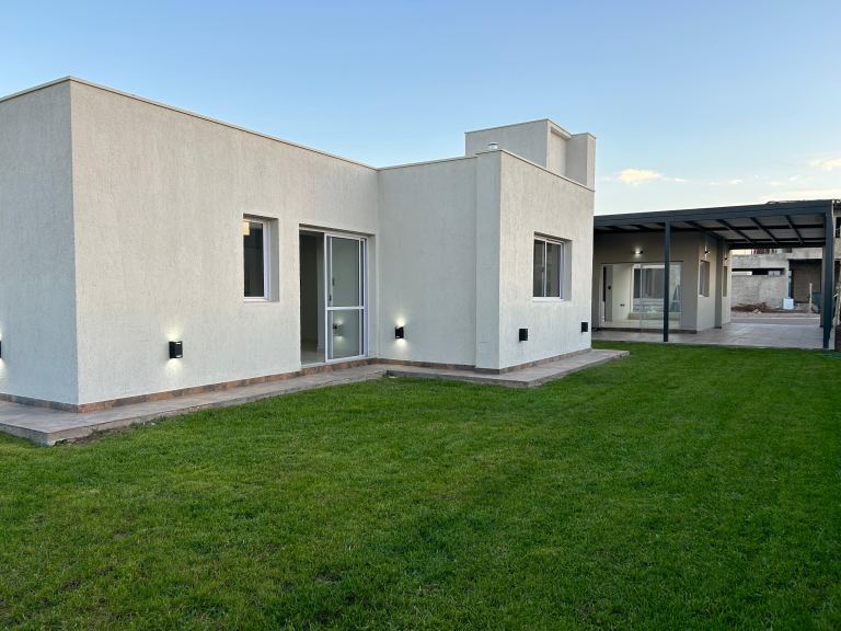 La casa posa sobre un lote central, no periferico y se encuentra distribuida en una sola planta y consta de: amplio ambiente intregrador con cocina, lavadero cubierto, tres dormitorios (uno en suite), baño completo, amplio patio jardin, cochera para dos autos.-