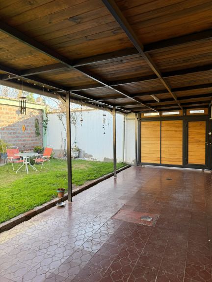 CASA: distribuida en una planta y consta de living comedor, cocina comedor con puerta ventana hacia patio jardin con churrasquera y cochera pasante. La parte intima de la casa posee tres dormitorios con placares y baño completo. Lavadero cubierto independiente.