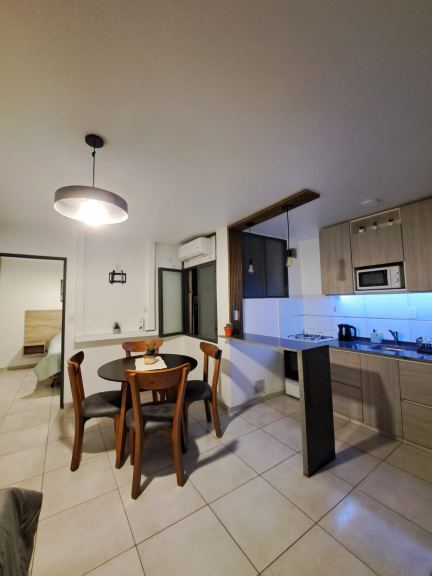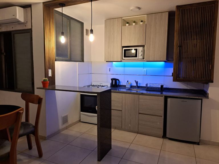 El mismo esta totalmente equipado para no mas de dos personas, es interno, se encuentra en un primer piso por escaleras y cuenta con: